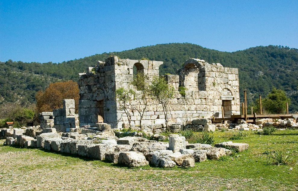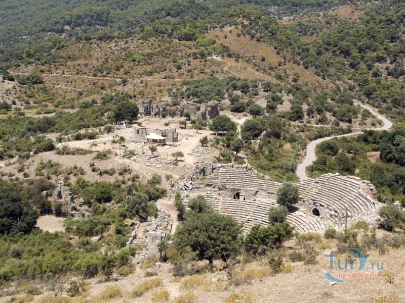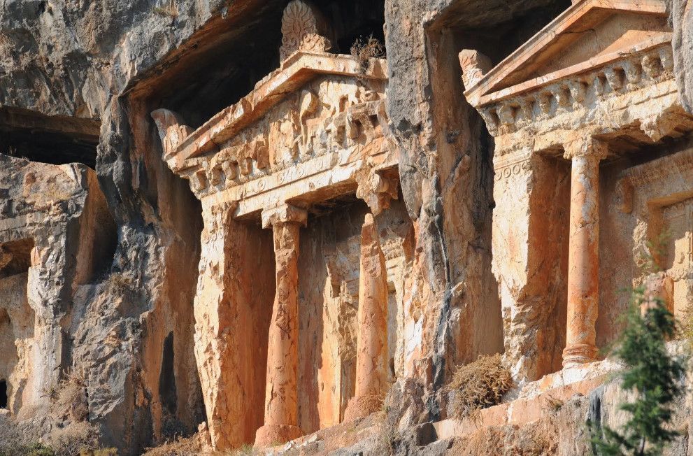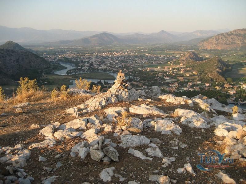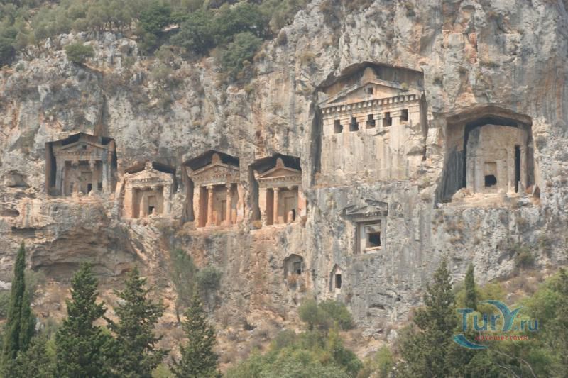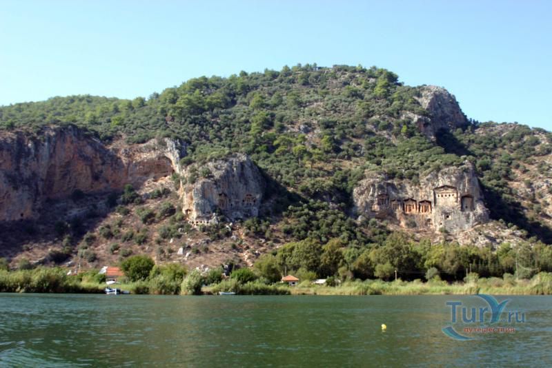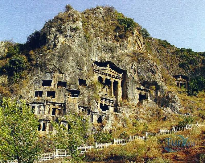 Древний город Каунос расположен на высоте 152 метра над уровнем моря, а акрополь находится на юго-западе города. Небольшая башня на полуострове, имеющая высоту около пятидесяти метров возведена в виде языка, расстилающегося между двух холмов в сторону моря. В течение древней и начала классической эпохи стены города, построенные на задней стороне Кауноса, Маленькой башни и Акрополя, а также внутригородские стены, образовали для города своеобразный защитный щит. Так как до сих пор ещё не на всей территории были произведены раскопки, до конца не ясна точная планировка античного города. Известно лишь то, что он был расширен террасами в период Гекатомнидлера. Предыдущие террасы были восстановлены, а в последующие периоды построены новые и более крупные. Название города упоминается уже в третьем тысячелетии до н.э. Каунос перенес присутствие на своей территории большого количества народов: ионийцев, карийцев, персов, ликийцев, римлян, византийцев и греков. Бейлик Ментеше распространил здесь в 1291 году свою власть, а в 1392 году эти земли были присоединены к Османскому государству султаном Баязидом. Одним из символов Кауноса стали скальные захоронения, датируемые четвёртым веком до н. э. Эти ясно виднеющиеся из Дальяна могилы использовались также во времена римлян. В могилах ликийского типа зачастую устанавливали лежак, состоящий из трех камней, На этот лежак укладывали покойника, а фасад могилы оформляли фронтоном и двумя ионийскими колоннами. Однако не ко всем гробницам можно подойти, для самых отважных здесь имеется веревочная лестница. Давно уже истлели останки захороненных здесь людей. Вечную память давно ушедших цивилизаций охраняют две львиные головы, которые с поверхности карийских гробниц смотрят друг на друга. Каунос являлся важным торговым и портовым городом. Со временем бухта в результате иловых наносов утратила свое значение и обмелела. По мнению Геродота, жители Кауноса сами себя называли уроженцами Гирита. Город был основан сыном Милетоса Кауносом, изгнанным из родительского дома из-за запретной связи со своей сестрой. Причал находится в десяти минутах ходьбы от города. Прибывающие сюда на яхтах оставляют свои корабли рядом с островом Деликли и подходят по каналу на шлюпках к причалу. Городской порт располагался в районе озера Сюлюклю у подножия акрополя. Море в те годы было на уровне самого акрополя. Когда вся Анатолия находилась под влиянием Персии, во времена персидского нашествия, Каунос перешел под управление Мавсола. После того как Александр Великий победил персов городом стала управлять принцесса Ада, потом Антигонус, а после Птолемеус. Город входил по очереди в Родосское и Бергамское королевства. Фрагменты расположенных на северной стороне стен являются средневековыми постройками. Самая длинная стена начинается от северной стороны порта и тянется до отвесных скал около деревни Дальян. Северная часть стены была возведена во времена правления Мавсола. Строения в северо-западной стороне были возведены во время эллинского периода, а те, что расположены непосредственно около порта, принадлежат еще более ранним эпохам. У подножия акрополя находится театр. Его партер насчитывает тридцать три ряда сидячих мест. Одна из расположенных к западу от театра построек, представляет собой церковь наподобие бази