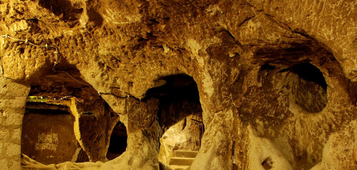 Каймаклы - крупный подземный город, расположенный в Каппадокии. Это сложная многоэтажная система туннелей и комнат, снабженная вентиляцией и колодцами с водой. Некоторые комнаты исполняли роль кухонь, складов, в которых могли храниться большие запасы продовольствия, винных погребов, гончарных, конюшен и других хозяйственных помещений - в пещерах была даже часовня. При необходимости, город мог одновременно вместить до пятнадцати тысяч человек. В Каймаклы есть туннель длиной в 9 километров, ведущий в еще один подземный город, Деринкую. На данный момент археологами раскопано восемь этажей, но для посещений открыты только верхние четыре. На первом, верхнем, этаже, располагались конюшни. Но, так как места там не так много, лошадей, вероятно, держали и в других местах тоже. У самого входа обратите внимание на каменный диск, который использовался для того, чтобы запечатать подземелья. Комнаты справа от входа скорее всего раньше были жилыми. Проход слева ведет к церкви с нефом и двумя аспидами и переносит вас на второй уровень. В передней части аспиды находится купель, рядом с ней - еще один запечатанный камнем проход и кладбище. Кроме того, тут так же располагались некоторые жилые помещения. На третьем уровне находятся помещения, использовавшиеся для хранения вина и масла. Если получше присмотреться, вы сможете увидеть там осколки посуды на полу в винных погребах. Также внимания заслуживает и находящаяся поблизости кухня. Четвертый этаж использовался для как складские помещения и другие кухни.