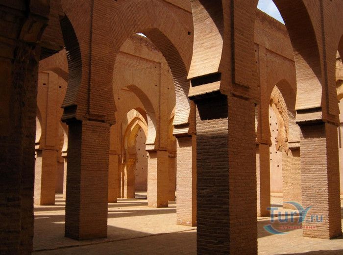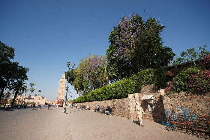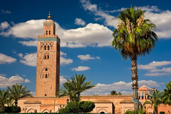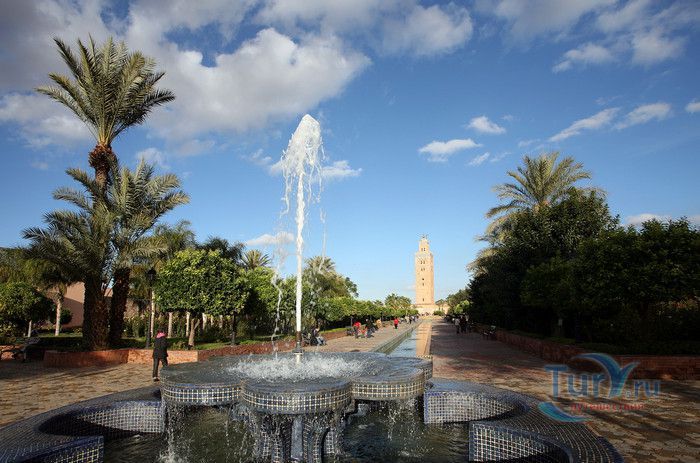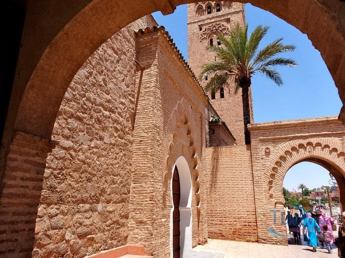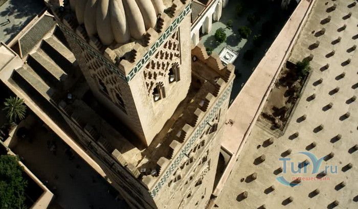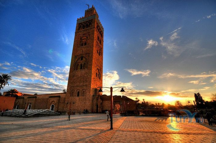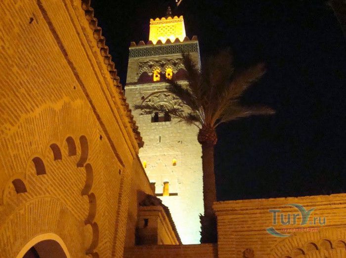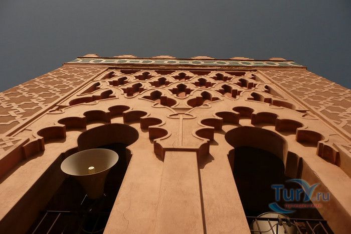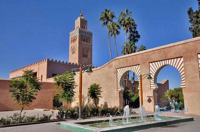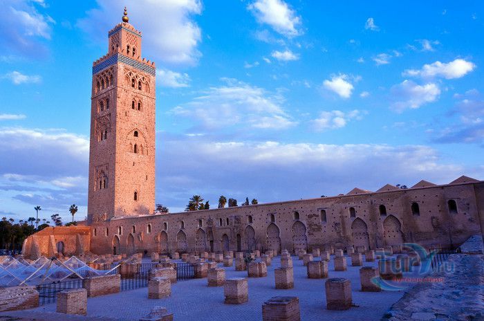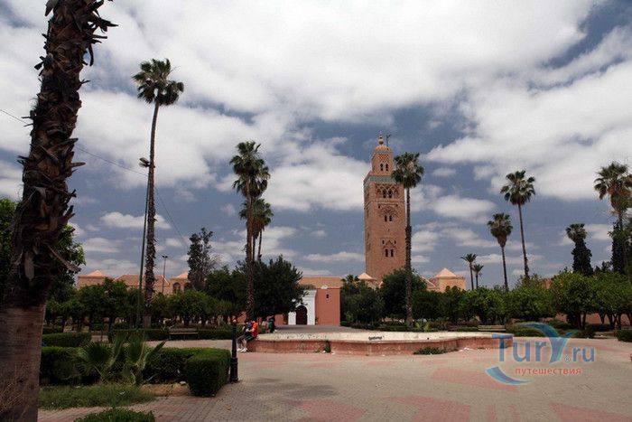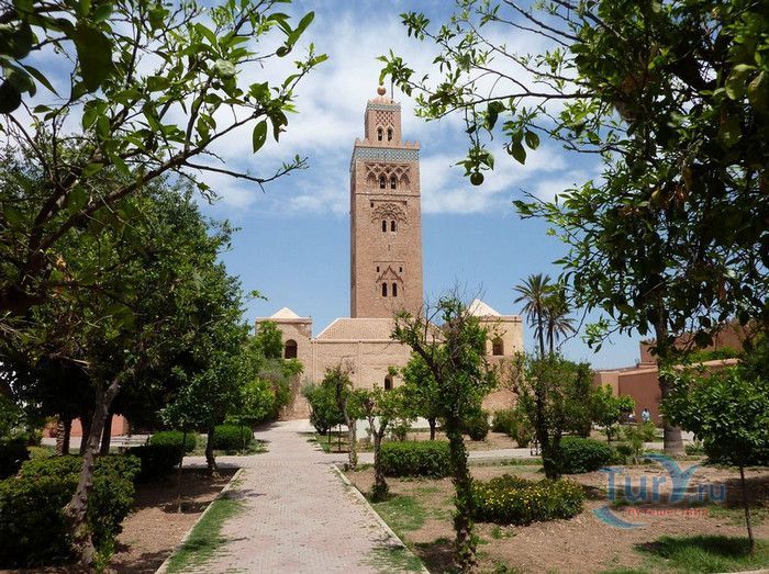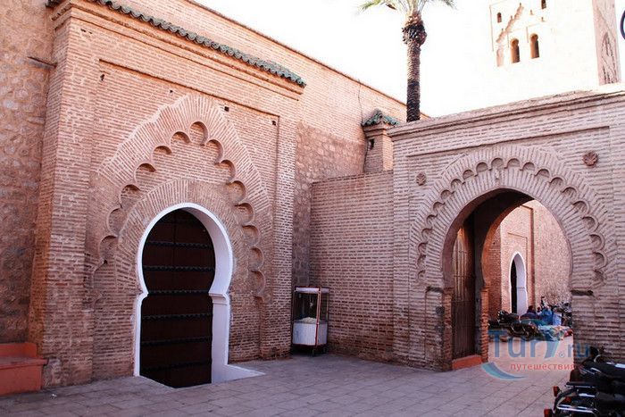Мечеть Кутубия расположена в Марокко, в городе Марракеш, в юго-западной части Старого города (медины). Строительство мечети, ставшей главной святыней и символом города Марракеш, было начато в 1120 году, во время правления династии Альморавидов, завершено в 1196 году, при Якубе аль Мансуре из династии Альмохадов. Мечеть Кутубия построена из красного камня и сланцевого песчаника, который добывали в карьерах Джебель-Гелиз. Фасад здания украшают ажурные арки и декоративный орнамент. Минарет, высотой 77 метров, построен в виде башни, которую венчает купол со шпилем, состоящим из четырёх медных шаров. Существует легенда, что изначально шаров было всего три, и они были отлиты из чистого золота. Четвёртый шар был изготовлен позднее, из золотых украшений жены Якуба аль Мансура, которая, в наказание за несоблюдение поста во время Рамадана, отдала свои драгоценности на переплавку и подарила отлитый из них шар мечети Кутубия. Стены минарета украшает резьба и ажурный орнамент, четвёртый и пятый уровни башни оформлены ступенчатыми зубцами. Внутренняя часть минарета состоит из шести помещений, расположенных один над другим. Широкий пандус, построенный внутри башни, позволял муэдзину въезжать на балкон, не сходя с коня. Молитвенный зал, способный одновременно вместить около 20000 молящихся, имеет Т-образную форму. Более 100 колонн поддерживают подковообразные арки, расположенные вдоль шестнадцати боковых и центрального нефов. Минбар (в католических храмах - кафедра) выполнен из сандалового и чёрного дерева, украшен инкрустацией из серебра и слоновой кости. В центре открытого внутреннего двора, который служит местом для намаза, установлен фонтан для омовений. Вход в мечеть Кутубия не мусульманам запрещён. Иностранные туристы могут прогуляться по пышному саду, расположенному рядом с мечетью, из каждого уголка которого открывается красивый вид на мечеть и минарет Кутубия.