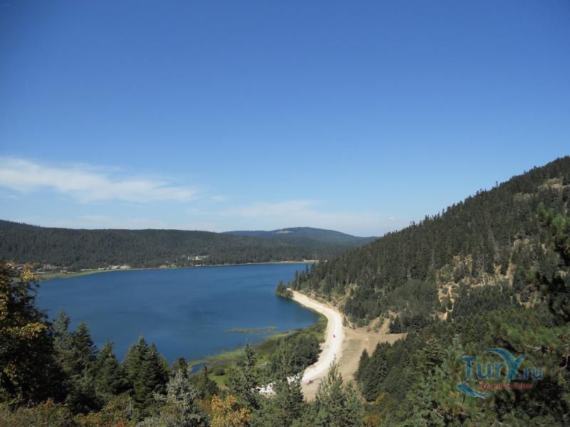Озеро Абант - пресноводное озеро, образовавшееся в Абантских горах на высоте 1328 метров в результате большого оползня. Имеет Площадь 128 гектаров и среднюю глубину 18 метров. Благодаря необыкновенной природной красоте озера и его окрестностей, покрытых густыми живописными лесами,богатой флоре и фауне и чистейшему воздуху этих мест, в 1988 году озеро Абант было наделено статусом национального природного парка Турции. Природный парк озера Абант - популярное место отдыха не только турецких, но иностарнных туристов. Берега озера покрыты лесами, богатыми редкими видами деревьев, таких, как черная сосна, бук, лиственница, граб, ясень, ива, можжевельник, тамариск, лещина, мушмула, а также здесь встречаются цветущие кустарники (роза) и ягоды (малина, ежевика, клубника), редкие целебные травы. Воздух, вода и почва здесь настолько чисты, что это создает отличные условия для жизни здесь диких оленей. Кроме этого тут обитают лисы, зайцы, шакалы, европейские косули, некоторые виды хищных птиц, а в озере плавают выдры и главное водится эндемичный вид форели - кумжа абантская, имеющая удивительно красивый жёлтый цвет с чёрными беспорядочными пятнышками. На берегах озера есть несколько небольших уютных отелей, а местные жители предлагают массу всяческих развлечений и услуг. Здесь вам предложат покататься ослах и конных экипажах, приобрести сделанные заботливыми руками местных рукодельниц тёплые шерстяные носки в зимнее время, а также попробовать различные виды продуктов из местных фермерских хозяйств. Кроме того, Непременными мероприятиями этого природного парка являются пикник, кампинг, спортивная ловля рыбы, прогулки пешком, на лодке, фаэтоне, верхом, а также зимний естественный ледовый каток.