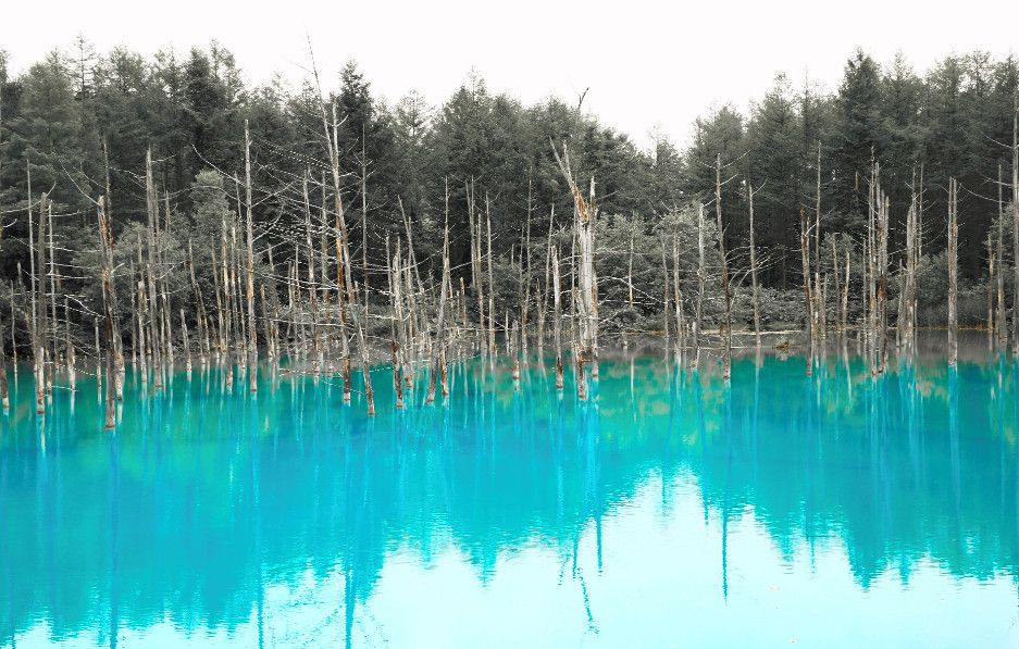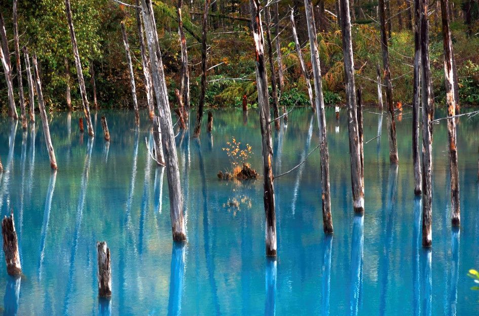 Недалеко от японского поселка Биэй расположен Голубой пруд. Свое название он получил благодаря неестественно голубому цвету воды, который привлекает туристов со всего света.