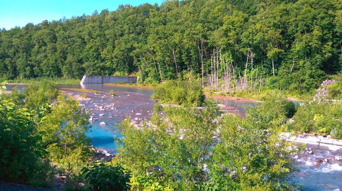 Этот необычный пруд появился после того, как в 1988 году была возведена плотина на реке для защиты региона от селевых потоков, возникающих при извержении вулкана Токати. Заблокированная плотиной вода стала накапливаться, и вскоре появился Голубой пруд.
