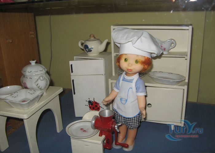 В экспозицию музея входят машины, экскаваторы, самолеты, большая игрушечная железная дорога с инициалами Сталина, промышленные образцы швейных машинок, игрушечные утюги и огромное количество старинных игрушек, которые на мгновение возвращают взрослых в далекое детство.