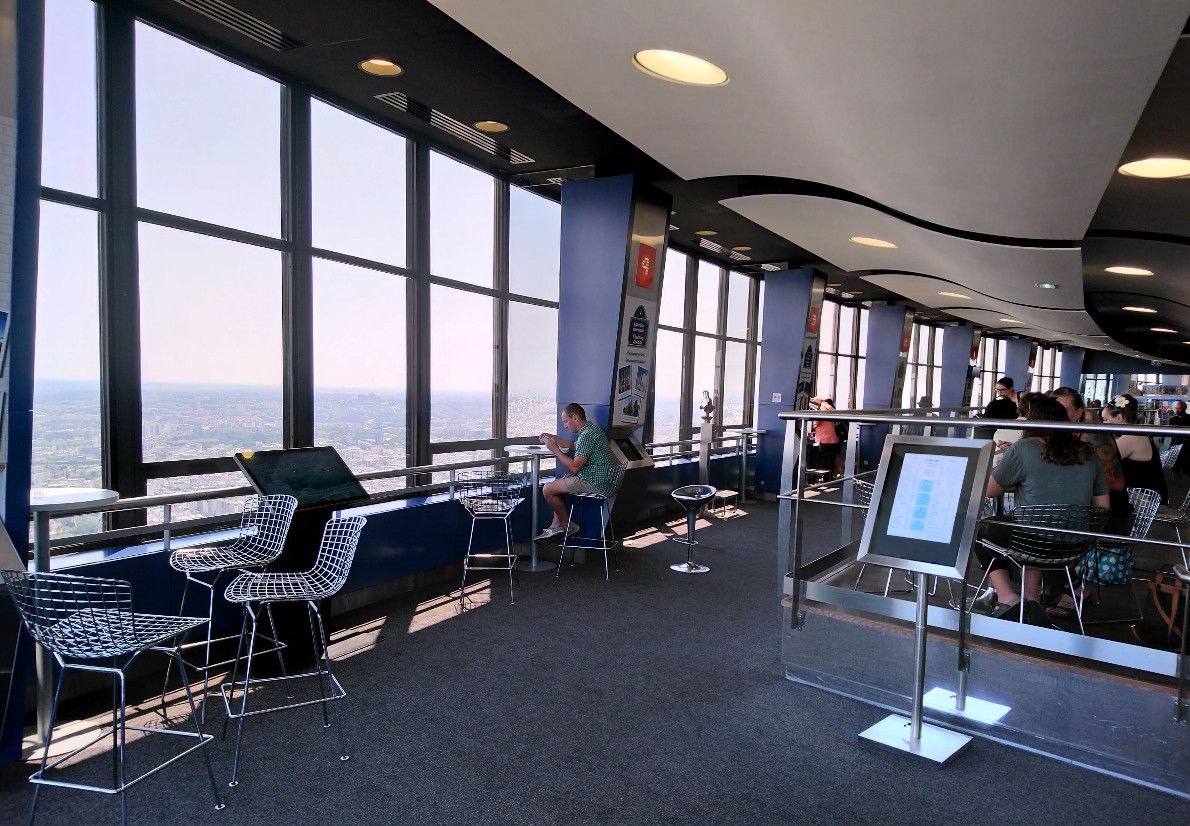 На верхних этажах высотки можно сытно пообедать в уютных кафе, запастись сувенирами на память. Подняться же на последние этажи знаменитого небоскреба можно с помощью лифтов, которых в башне 25 единиц. Однако, наибольшим интересом туристов пользуются лишь те знаменитые на всю Европу скоростные лифты, которые способны вознести своих пассажиров на 56 этаж небоскреба менее, чем за сорок секунд! Во время этого стремительного путешествия выброс в кровь адреналина обеспечен.
