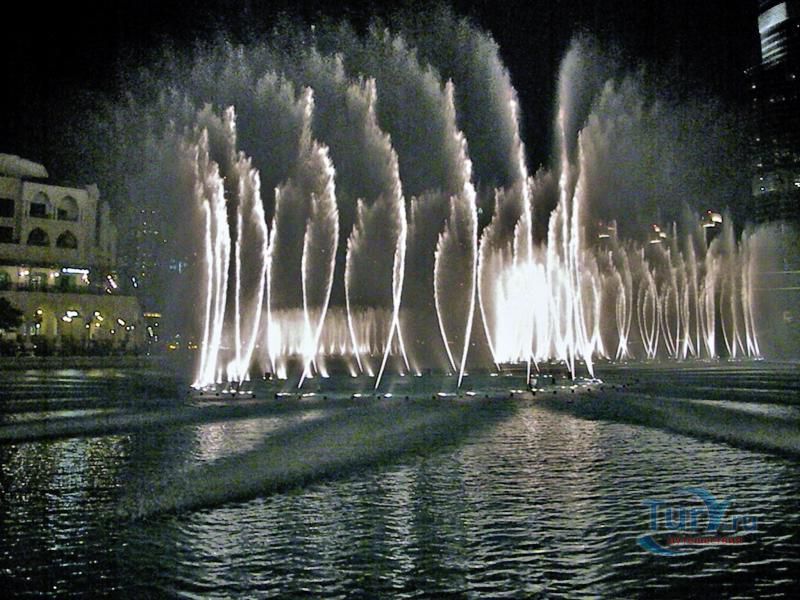 Фонтан мирового класса со встроенным световым и звуковым шоу в центре Дубая, в районе Downtown Burj Dubai - это архитектурный элемент города, который славится всемирным водноинженерным чудом и является одним из крупнейших и интереснейших городских аттракционов, который привлекает внимание десятков миллионов туристов ежегодно. Его длина составляет 275 метров (приблизительно два футбольных поля), что на 25% больше известного американского «поющего» фонтана Ballagio в Лас-Вегасе. Мощные, разбрызгивающие воду, сопла поднимают струю воды на 150 метров (высота 50-этажного здания). С помощью 6600 световых индикаторов и 50 цветных прожекторов создаются свыше тысячи вариантов световых представлений для зрителей. Подборка музыкального сопровождения для светового представления также весьма разнообразна – от классических до современных арабских и мировых музыкальных шедевров. Уникальный фонтан расположен рядом с Burj Dubai, самым высоким в мире зданием, и торговым и развлекательным центром Дубая – Dubai Mall. Дизайнером-архитектором уникального фонтанного чуда стала калифорнийская компания WET Design, приложившая свои силы и мастерство при строительстве известного американского «поющего» фонтана Bellagio. Проект дубайского фонтана разработан специалистами Turner Construction International.