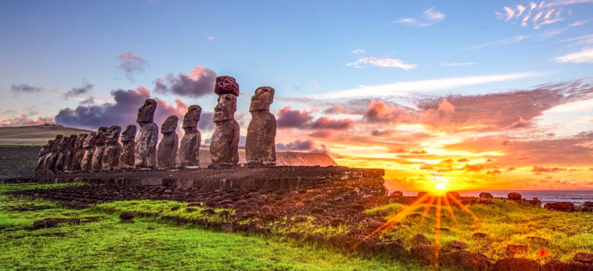 Аху Тонгарики находится недалеко от вулкана Рано Рараку и является самой большой церемониальной каменной платформой на острове Пасхи с 15 статуями моаи различного размера. Статуи Моаи смотрят лицом вглубь острова, повернувшись спинами к океану. Недалеко от этого Аху на земле валяются поверженные статуи истуканов, неподалеку от которых лежат и их головные уборы красного цвета - так называемые шапки пукао, которые украшали головы величаво стоящих истуканов. Шапки изготавливались отдельно и водружались на головы уже стоящих на постаменте истуканов. До сих пор остается загадкой не только то, как перемещали и устанавливали истуканов на постамент, но и то как им на головы ухитрялись водрузить многотонные шапки. Ведь в те времена на острове не было абсолютно никакой техники. В ход могли идти только человеческая сила и подручные средства из камней и дерева.