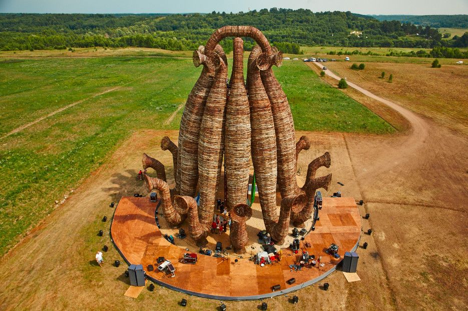 Деревня Никола-Ленивец находится на расстоянии 180 км от Москвы и является особо охраняемой природно-исторической территорией в составе Национального парка " Угра". С 2000 года деревня Никола-Ленивец стал форпостом современного искусства благодаря возведённым здесь ландшафтным объектам известных мастеров архитектуры, которые вросли в сельский пейзаж и всё ещё продолжают удивлять гостей и приезжих. Каждый год количество объектов возрастает. Ещё одна особенность этого «музея под открытым небом», состоит в том, что все «легендарные постройки» выполнены с использованием естественных природных материалов: сена, дров, снега, шишек, дерева, и в строительстве каждого из них принимали участие местные жители деревни Никола – Ленивец. Только здесь можно увидеть настоящий "дровник" высотой с пятиэтажный дом, старый сарай, в стенах которого просверлили 200 000 дырочек, теперь изнутри льется необыкновенный свет – будто в нём поселилось множество светлячков, крепость из шишек высотой более 5 метров. Обязательно подымитесь в действующий деревянный туалет, который возвышается над лесом. Ещё одно из творений - это «Деревянное Ухо», высотой более 7 метров. В него можно залезть и наслаждаться дивным закатом, а ещё оно собирает все звуки природы и дает возможность сосредоточиться на созерцании окружающей красоты. Сфотографируйтесь среди огромной стаи деревянных грачей, каждый из них размером с поросёнка, которые высадились на поле возле церкви. Поднимитесь в "Дом над лесом" - это избушка на деревьях, новое видение дачного домика художника-архитектора Анны Щетининой. На "поляне отдыха" вы обнаружите несколько десятков гамаков, плюхнитесь в них и забудете обо всех городских делах и проблемах. Запечатлейте грандиозную инсталляцию художника Николая Полисского "Орёл в огне" - железная птица стоит одиноко в поле, её размеры поражают, а грозный вид завораживает. Специально для вашей группы будет организована уникальная экскурсия по территории парка с посещением всех монументальных объектов. С подробным рассказом о каждом. На каждый объект можно подняться, потрогать его руками, сфотографироваться. А затем приглашаем Вас на вкусный пикник на свежем воздухе. Вы отведаете замечательную деревенскую кухню. Несколько деревенских семей готовят русские разносолы, соблюдая все старинные рецепты "щи по-деревенски", "огурцы и помидорчики из дубового бочонка", «квашеная капуста с лесной клюквой", «самогоночка на еловых шишках", "шашлычок из парного поросёнка" и многое другое.