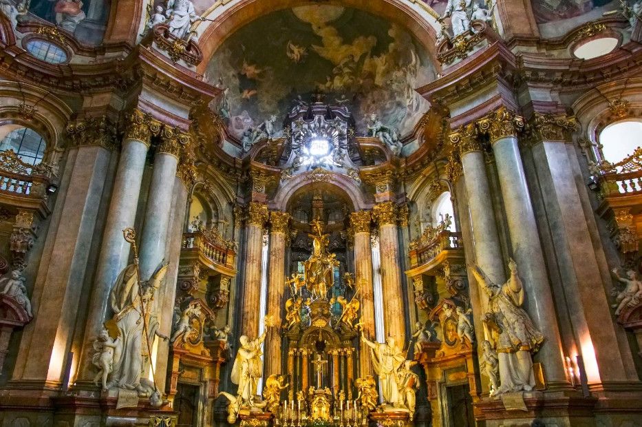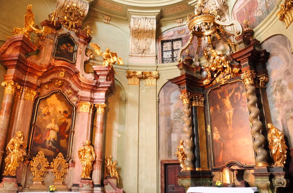Размеры собора впечатляют: его куполу на высоте 75 метров могла бы позавидовать смотровая площадка на горе Петршин. Не имеют себе равных и росписи сводов главного нефа занимающие площадь 1500 м2 . Костел отличается необыкновенной акустикой. Здесь часто играл на органе Моцарт во время своего пребывания в Праге в 1786 и 1787 годах.