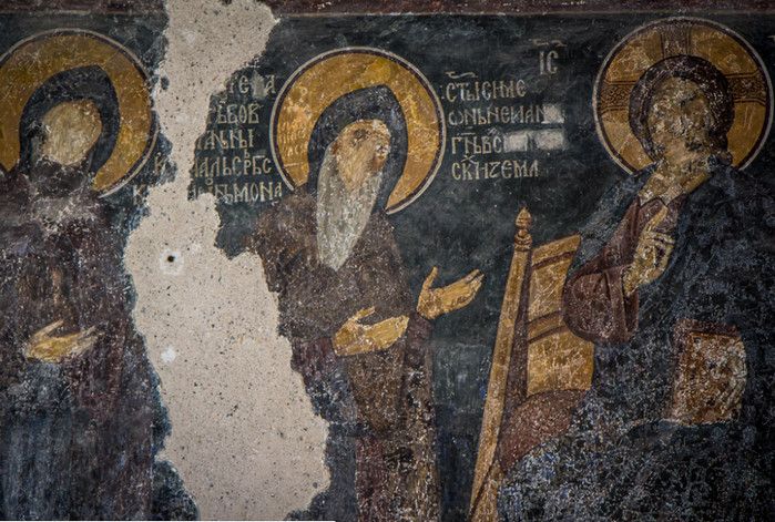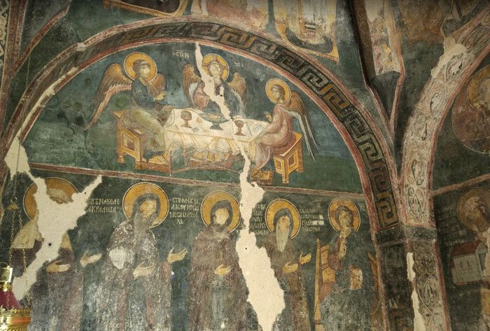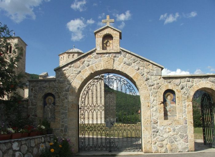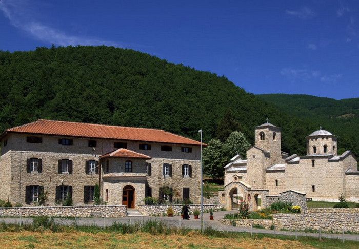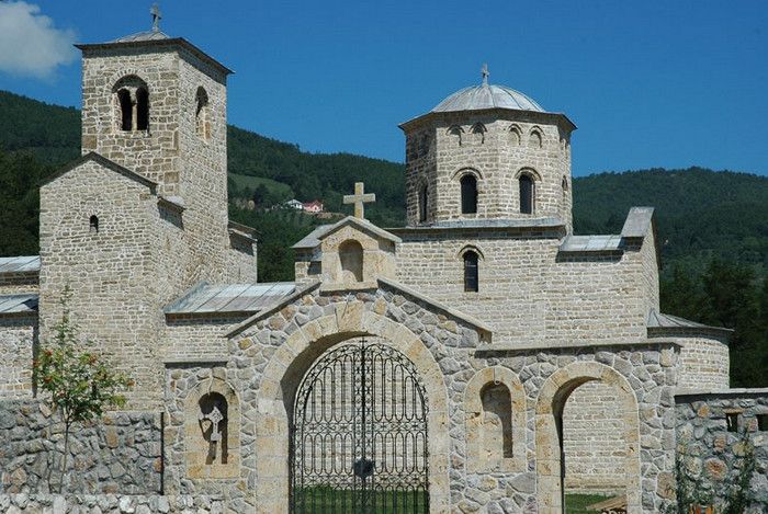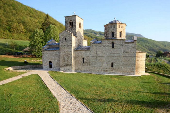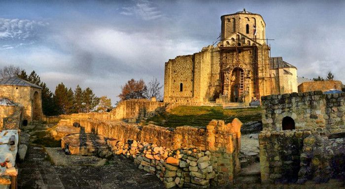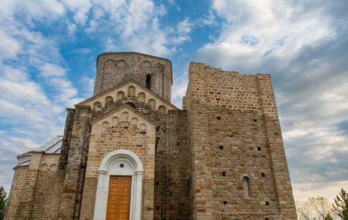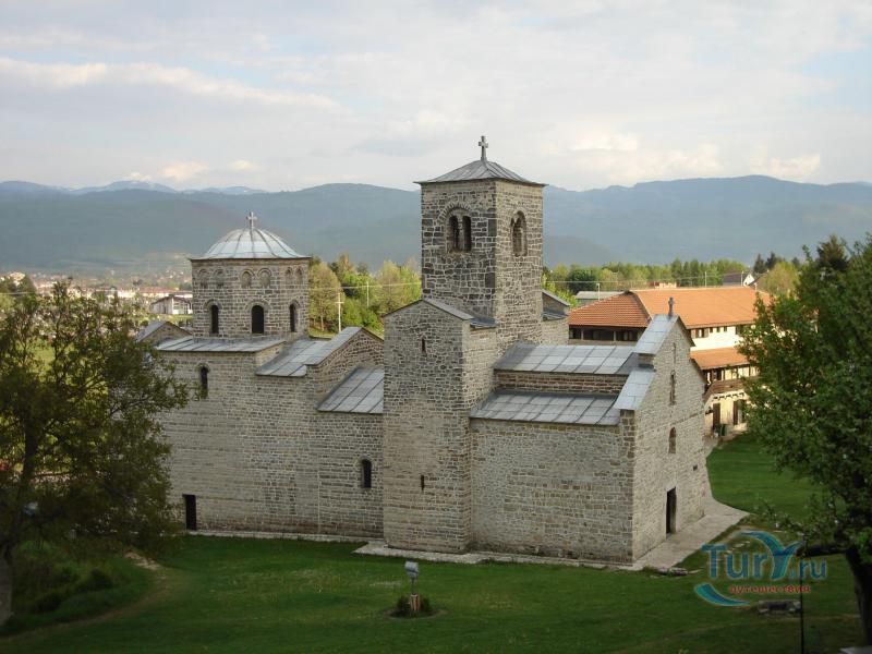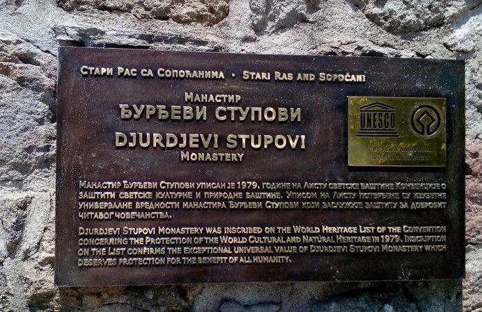 Монастырь Джурджеви Ступови стоит на холме, с которого открывается красивейшая панорама города Нови Пазар. Монастырский комплекс включает церковь св. Георгия, трапезную, дортуар (общую спальню), резервуары с водой и стены с башней у входа.
