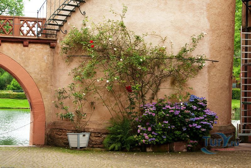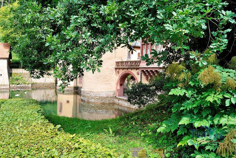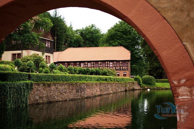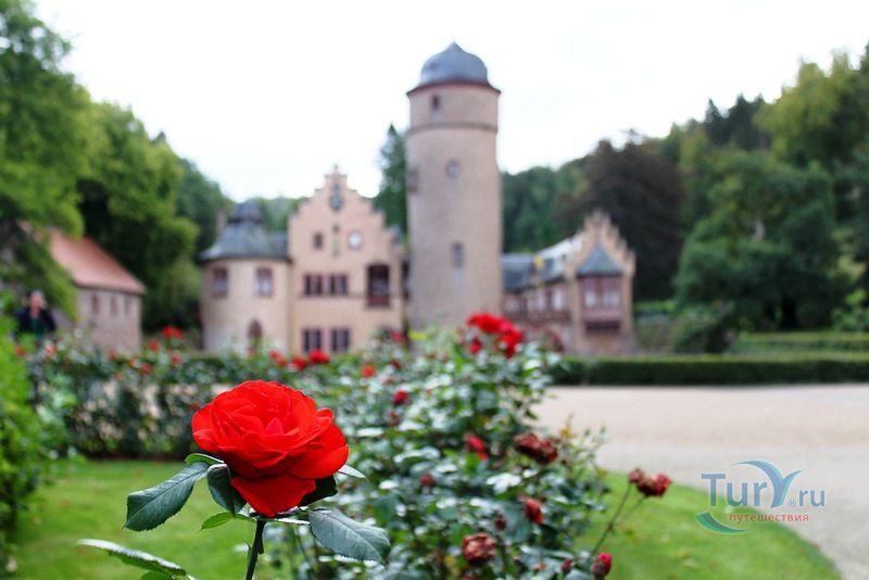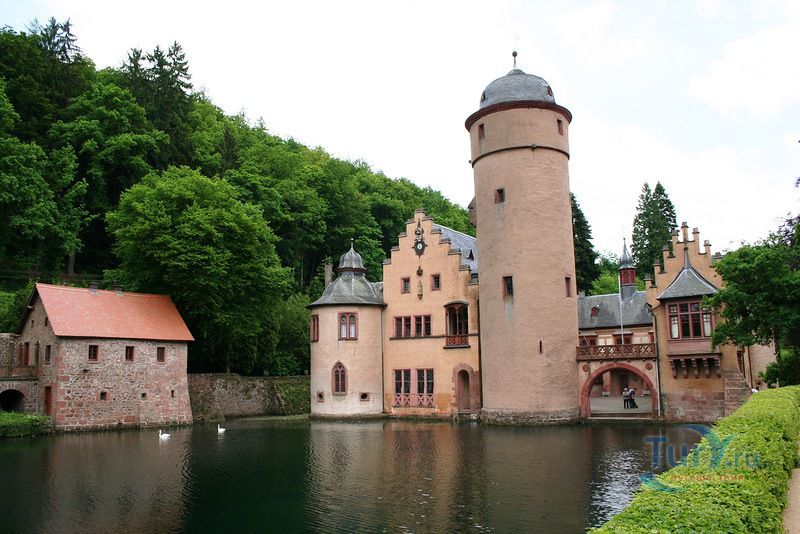 Замок Меспельбрунн считается одним из самых прекрасных замков в Германии. Он расположен на живописном берегу небольшого озера посреди лесистой местности между Франкфуртом и Вюрцбургом, на территории города Меспельбрунн. Недалеко от замка, который возведен между рядами великолепных деревьев, проложено несколько изящных тропинок и маршрутов для пешеходов. Замок Меспельбрунн, часто упоминаемый в туристических путеводителях, пользуется популярностью у посетителей. Особенно в теплые месяцы здесь можно увидеть целые толпы визитеров со всего света. Замок – частная собственность семьи графов Ингельхайм (Ingelheim). Семейство обитает в южном крыле, тогда как другие крылья и залы замка открыты для общественного посещения. Возле стоянки замка есть очень хороший ресторан, где можно посидеть и полюбоваться видами Меспельбрунна.