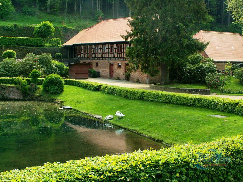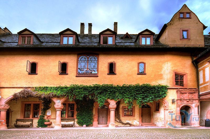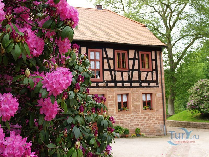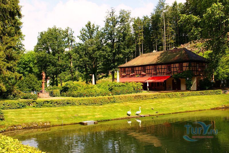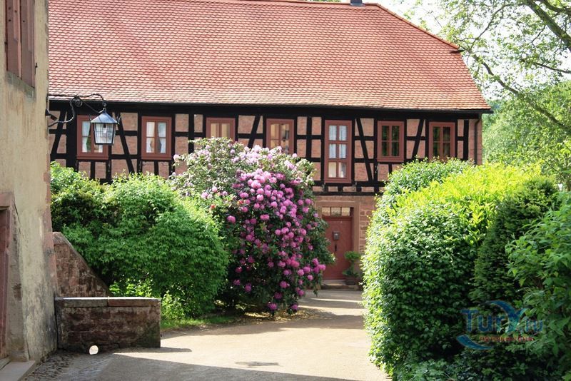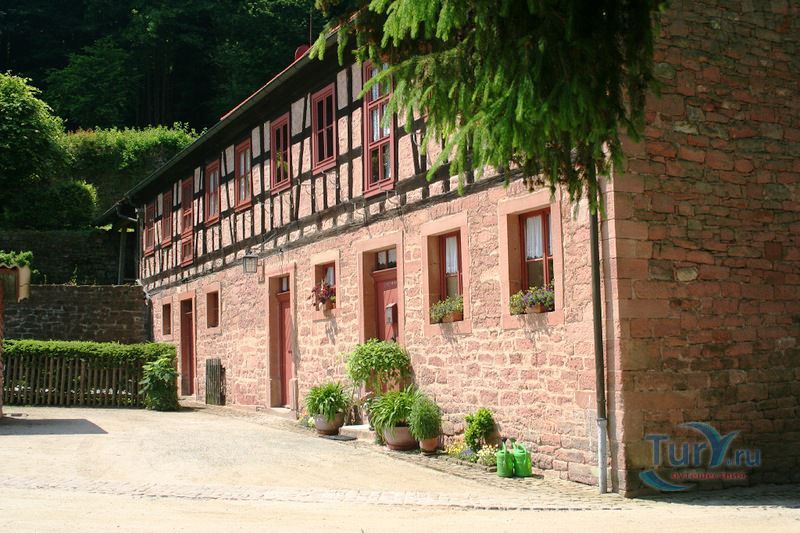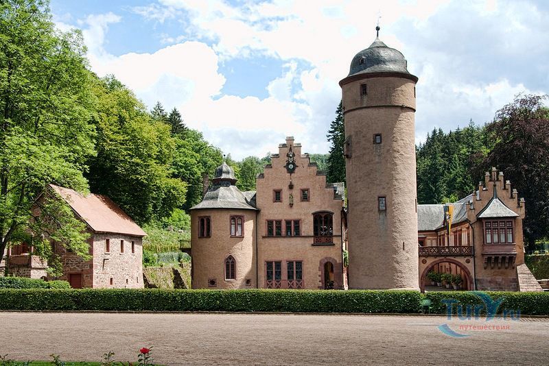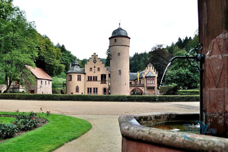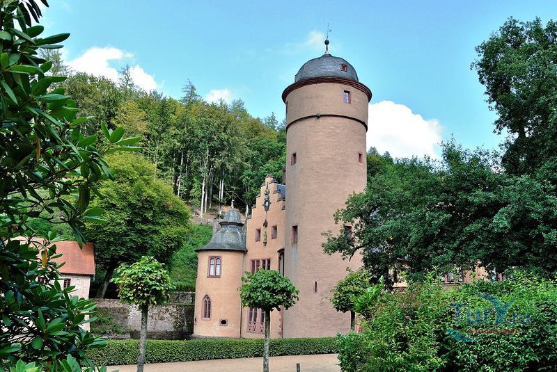 Замок Меспельбрунн – один из самых посещаемых в северной Баварии. Находящийся в небольшой, укрытой и живописной долине, он сумел остаться в целости и сохранности во время Тридцатилетней войны и не пострадать за десятилетие Первой и Второй мировой войны. Замок Меспельбрунн – один из немногих замков в Германии, которому практически удалось не изменить свои оригинальные формы и размеры, включая даже старую часть замка, которая датируется 13 веком, и массивные башни. Башни одинаковой высоты украшены фронтонами на западе.