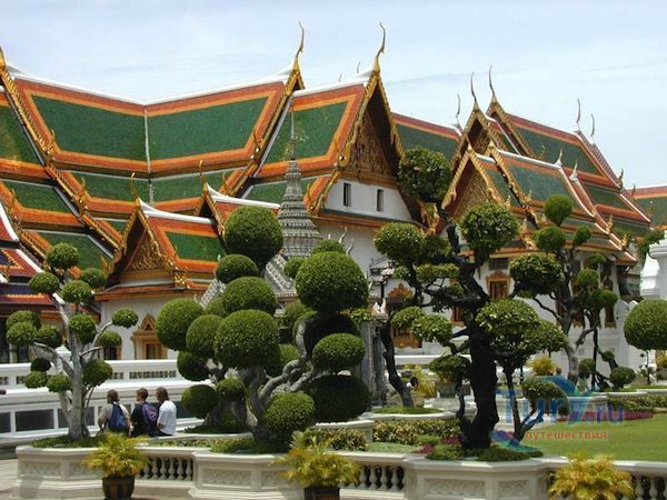 Ансамбль Храма Изумрудного Будды и Королевского Дворца — это то, что должен увидеть каждый, оказавшись в столице Таиланда, это главная достопримечательность Бангкока. Находящийся, как и храм, на острове Раттакосин, Дворец представляет собой огромный архитектурный памятник, состоящий из нескольких зданий. В некоторых из них ныне располагаются правительственные учреждения, однако сама королевская семья здесь уже давно не живет. Строительство дворца началось в 1782 году королем Рамой I, который был родоначальником династии Рама. Дворец занимает большую территорию площадью в 218 тысяч м2 с 95 пагодами и окружен четырьмя стенами, чья длина составляет 2 километра. Открытые для посещения здания расположены в южной части комплекса.