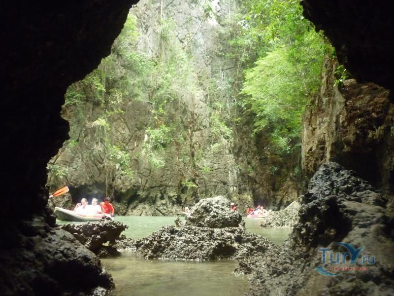 Острова залива Пханг Нга таят в себе Тёмные тоннели, доступные всего лишь несколько часов в сутки во время отливов, ведут во внутренние пустоты к крохотным уединённым пляжам. прекрасные лагуны, окруженные скалами со всех сторон. Чтобы их увидеть туристы пересаживаются на каноэ.