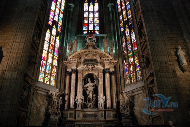 Внутренняя обстановка и его грандиозность порой шокируют даже очень опытных путешественников, повидавших на своем пути множество мировых достопримечательностей. Внутри собора Дуомо 52 украшенные статуями и просто поражающие своим масштабом колонны, призванные символизировать количество недель в году.