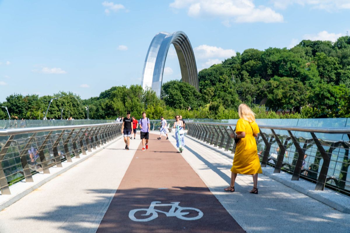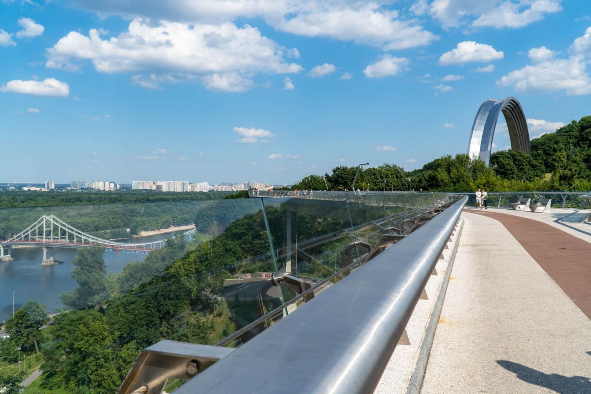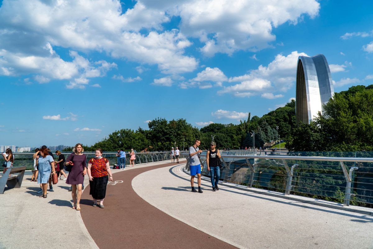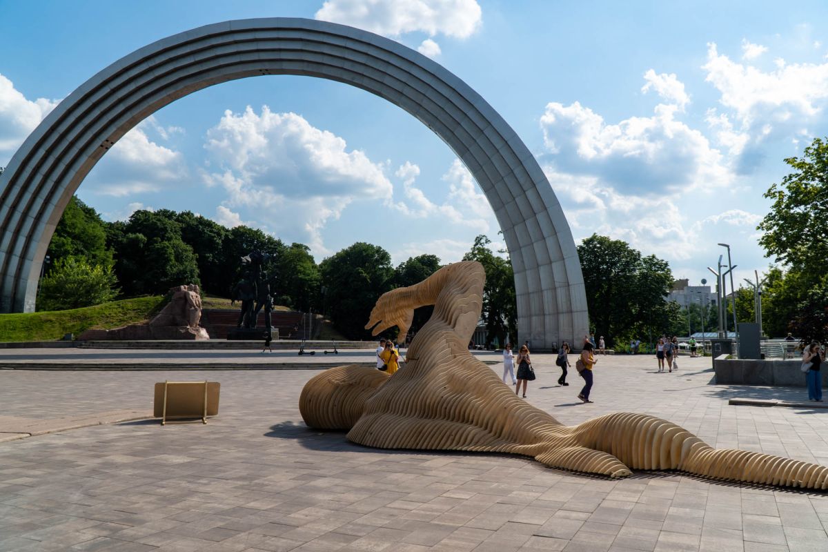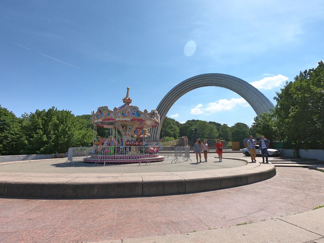 Арка Дружбы Народов расположена в центре Киева, в Хрещатом парке. Монумент, работа над которым велась четыре года, появился в 1982 г. в ходе подготовки к празднованию 1500-летия Киева, посвящен воссоединению Украины с Россией. Скульптурная композиция состоит из трёх элементов: самой арки в виде громадной радуги, бронзовой скульптуры двух трудящихся, держащих в руках советский орден Дружбы народов, и сцены Переяславской рады. В центре композиции - статуя Богдана Хмельницкого и боярина Василия Бутурлина, русского посла. В результате Переяславской рады был подписан исторический договор об объединении Украины с Россией. За монументом расположена смотровая площадка, с которой открываются великолепные виды на Днепр и Левый берег.