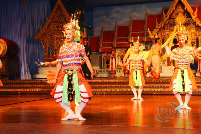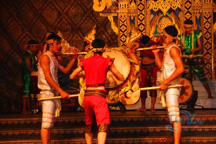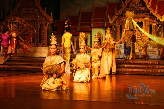 Вам будут продемонстрированы национальные танцы различных народностей Тайланда, яркие костюмы, национальный бокс - Муай Тай, игра на барабанах и даже воссоздание древней битвы народов на слонах. Все действие происходит на выдвижной сцене, ярко освещенной софитами. Это представление никого не оставит равнодушным.