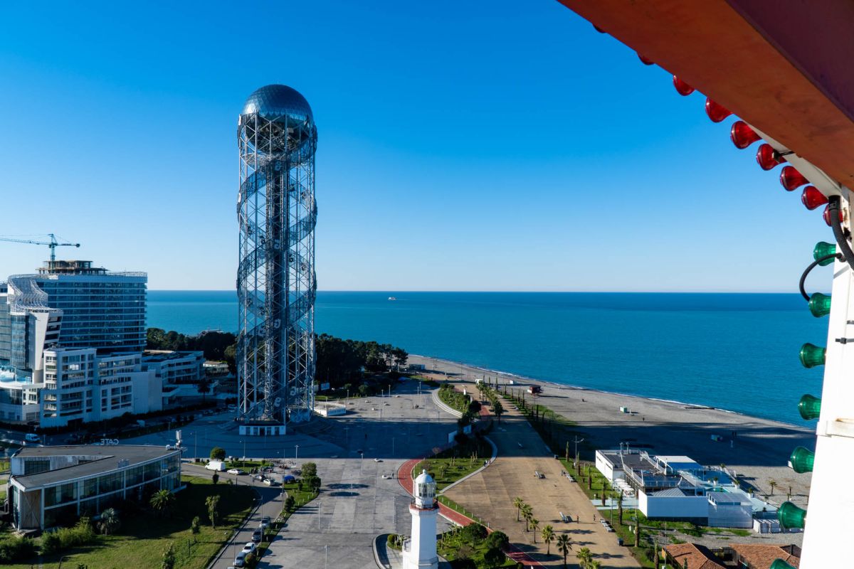 Башня грузинского алфавита была построена в 2012 году по проекту испанского архитектора Альберто Доминго Кабо и уже стала одним из главных символов города. Конструкция представляет собой подобие клеточного ДНК, нуклеотидами в котором являются буквы из грузинского алфавита. Находится это необычное сооружение в Батумском «Парке чудес».