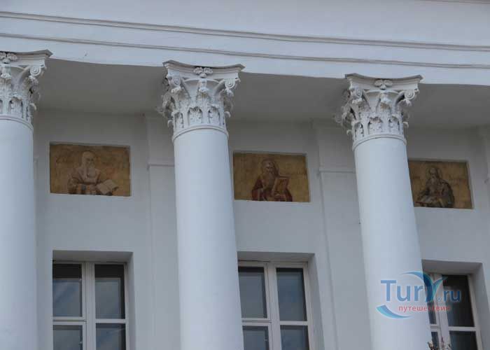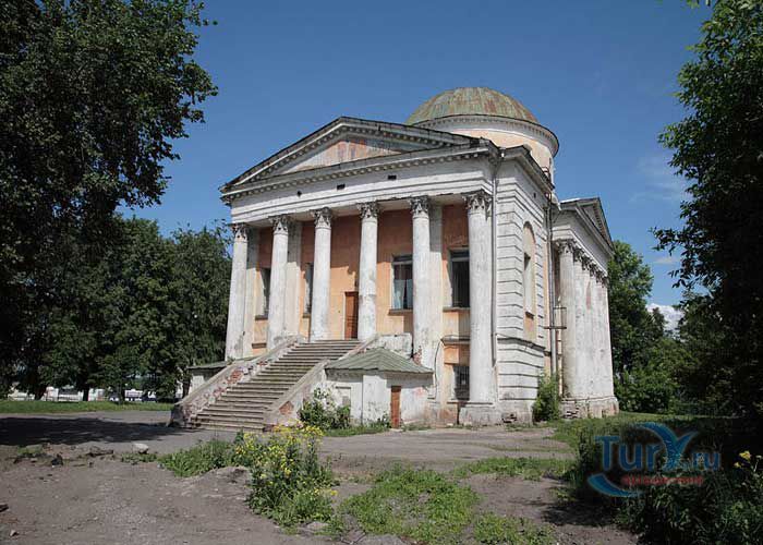 Церковь Илии Пророка и Тихона, епископа Амафунтского в Ярославле был построен в 1825-1831 годах, на территории Ярославского кремля. По преданию, первый храм на этом месте был поставлен еще в начале XI века, там где Ярослав Мудрый одержал победу в схватке с медведем. С этим сюжетом связана легенда об основании Ярославля. На этом месте, где произошла схватка было древнее языческое капище Перуна, и при обращении жителей в христианство на месте капища по приказу Ярослава Мудрого построили деревянную Ильинскую церковь, которая затем многократно перестраивалась, пока не было выстроено нынешнее здание. Сохранившаяся до наших дней Ильинско-Тихоновская церковь большое, просторное здание, с массивным основным объемом и крупной прямоугольной апсидой. Над западным фронтоном стояли две четырехугольные колокольни с арочными проемами. На фасадах - многоколонные портики коринфского ордера и треугольные фронтоны с фресками, завершающиеся круглым барабаном с куполом. Две высокие квадратные башни-звонницы с западной стороны были разобраны в советское время. В настоящее время памятник заселен государственными учреждениями.