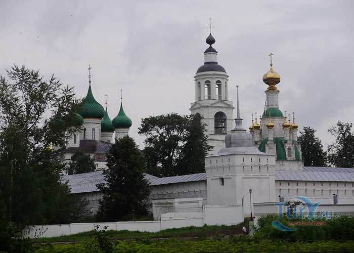 Свято-Введенский Толгский женский монастырь основан в 1314 году в устье реки Толги, впадающей в Волгу выше города Ярославль. Это один из лучших ярославских ансамблей сложившийся во второй половине XVII - начале XVIII веков. В 1987 году архитектурный ансамбль был передан Русской православной церкви для организации женского Свято-Введенского Толстого монастыря. Основание Толгского монастыря связано с чудесным явлением иконы "Толгской Богоматери" начала XIV века. В 1314 году местный владыка Трифон, объезжая епархию, остановился на ночлег на берегу Волги возле устья несуществующей ныне реки Толги. В полночь он проснулся от яркого света и увидел на противоположном берегу Волги сияние. Через реку к нему тянулся неизвестно откуда взявшийся мост. Владыка перейдя мост обнаружил, что сияние исходит от образа Богоматери, находившегося в ветвях дерева. На этом месте построили храм для Толгской иконы. Так началась история монастыря. Икона, положившая начало обители, сохранилась до наших дней. Постепенно чудеса и исцеления, совершаемые иконой, сделали монастырь известным.