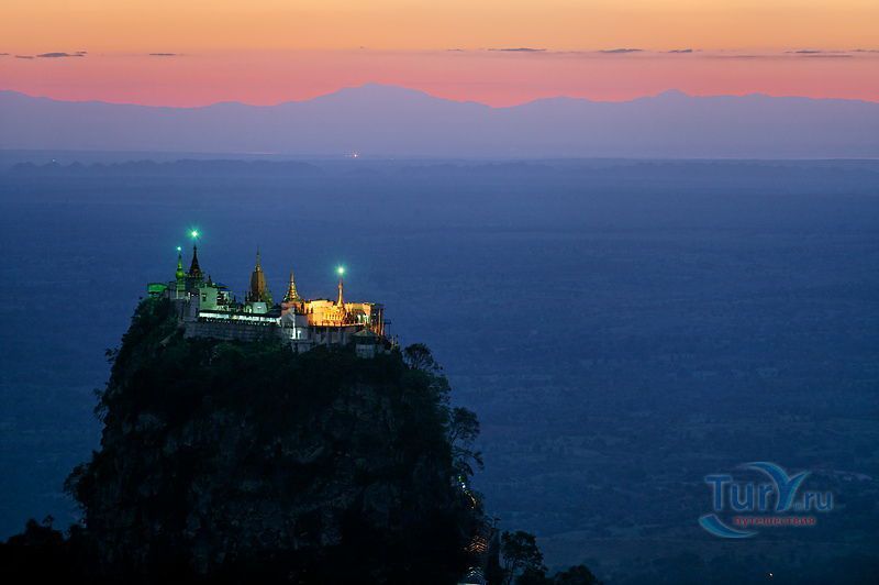 Гора Попа является одной из главных достопримечательностей Мьянмы. Загадочная гора-вулкан Попа с потухшим кратером на вершине считается самым известным святилищем духов (натов) в Мьянме, которым с древности поклонялись бирманские племена. Каждый год на протяжении 700 лет гору посещает большое количество паломников во время полнолуния Надо в ноябре-декабре и во время праздника полнолуния Найон в мае-июне. Подняться на вершину горы можно по очень крутой лестнице, которую построил буддийский монах У Кханди. При хорошей погоде гору видно за 60 км. Вид с Горы Попа просто потрясающий - с вершины горы виден старинный город Баган, а с противоположной стороны виден каньон глубиной 914 метров. С юго-западной стороны горы расположена скала Таунг-Калат высотой более 700 метров с буддийским монастырём на самой вершине. Существует поверье, что нельзя надевать одежду красного или чёрного цвета, когда посещаете Гору Попа, также нельзя брать с собой мясо, чтобы не раздражать духов-натов. Гору Попа также называют мьянмарским олимпом из-за большой мифологической значимости места для культуры Бирмы. С горой и монастырём на её вершине связано большое количество легенд, начиная от сотворения мира и до рождения царей и цариц. Гора Попа олицетворяет смесь буддизма и традиционных мьянмарских представлений.