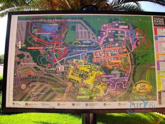 Парк Развлечений Голд Риф Сити расположен в Южно-Африканской Республике, в 8 км от центра Йоханнесбурга, построен в 1987 году на месте старого золотоносного рудника Crown Mines, занимает территорию площадью 12 гектаров. В парке воссоздана атмосфера времён "золотой лихорадки" - улицы с домами и тавернами конца XIX века, сотрудники в соответствующих тому времени костюмах. Парк начинался с экскурсий в старую шахту, постепенно его инфраструктура значительно расширилась, появились современные аттракционы, рестораны, казино, был создан музей, экспозиция которого посвящена добыче золотой руды и технологии отливки золотых монет и слитков. Парк Голд Риф Сити предлагает множество развлечений на любой вкус и возраст. Любителей острых ощущений ждут горка Анаконда (одна из двух существующих в мире "перевёрнутых" горок), Башня ужаса, позволяющая пережить ощущения падения в шахту с 50-метровой высоты на скорости 100 километров в час, американские горки Джози Экспресс, которые на головокружительной скорости пронесут над вершинами деревьев, предлагая отличный вид на Йоханнесбург. Аттракцион Золотой цикл на скорости 85 километров в час всего за 3 секунды поднимет на высоту 40 метров, и с такой же скоростью "обрушит" вниз. Кроме того, посетители могут совершить захватывающее путешествие по реке с опасными порогами, водопадами и пещерами (аттракцион Бешеные речные пороги), прокатиться на Поезде-беглеце и почувствовать себя космонавтом на карусели НЛО, вращающейся со скоростью 50 километров в час. Для малышей в парке оборудована детская зона с каруселями, качелями и мини зоопарком. На территории парка работают рестораны, фаст-фуды и закусочные, есть театр, 4D кинотеатр, отели и магазины. Любители азартных игр могут посетить казино и игровые автоматы. Сегодня парк развлечений Голд Риф Сити является крупнейшим на континенте, ежегодно его посещают тысячи туристов со всего мира.
