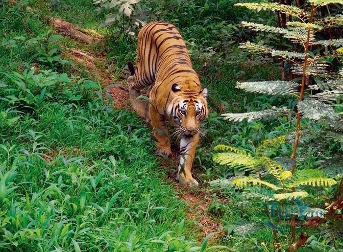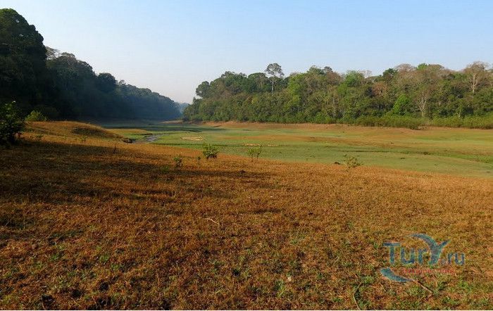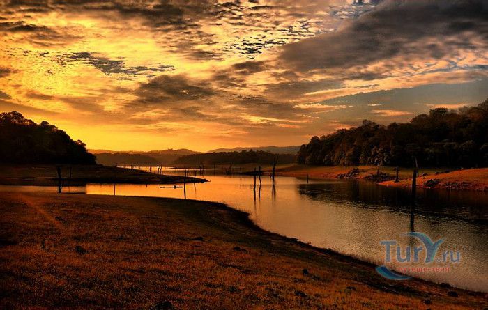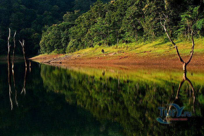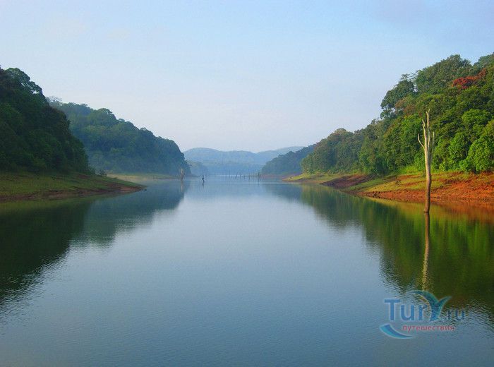 Национальный парк Перияр, более известный под названием Тигриный заповедник Перияр, расположен на юге Индии, в штате Керала, на территории горного хребта Западные Гаты. В 1895 году на реке Перияр была построена плотина, в результате чего образовалось одноимённое озеро площадью 26 квадратных километров. Оно стало постоянным источником воды для растений и животных этой местности. С целью сохранения уникальной экосистемы и биоразнообразия территории вокруг водоёма, в 1899 году лесная зона площадью 600 квадратных километров была объявлена заповедной. В 1978 году был создан Тигриный заповедник Перияр, в 1982 году получивший статус Национального парка, охраняемая территория была расширена до 925 квадратных километров. Ландшафт заповедника разнообразен - горные пики высотой 1700 метров над уровнем моря на востоке и западе, большое равнинное плато и низменности в долине реки Памба, на которых растут тропические вечнозеленые, влажные и лиственные леса. Главной достопримечательностью Национального парка считается Тигриный заповедник Перияр. На его территории, по данным 2008 года, обитают 24 бенгальских тигра. Кроме того, парк Перияр является участником международной программы по сохранению диких индийских слонов, которых в парке насчитывается около 1000 особей. В джунглях заповедника обитают также лепарды, гауры, индийские замбары, бизоны, полосатая куница, мунтжаки, мангусты, медведь лени, индийский дикобраз, гигантская белка, вандеру и многие другие млекопитающие (всего 62 вида). В парке также зафиксировано огромное видовое разнообразие птиц (около 265 видов), на его территории обитают 48 видов пресмыкающихся, 29 видов земноводных, 40 видов рыб, около 160 видов бабочек. Флора представлена 2500 видами растений, в числе которых эвкалипт, баньян, сандал, 350 видов лекарственных растений, 170 видов трав и 140 видов орхидей. Национальный парк Перияр является одним из самых известных и посещаемых природных парков Индии. Для посетителей парка организованы увлекательные туристические маршруты, желающие могут прокатиться в лодке по озеру Перияр, побывать в бамбуковой роще, отправиться в поход в джунгли. В парке оборудованы места для отдыха, есть кемпинг и палаточный лагерь.
