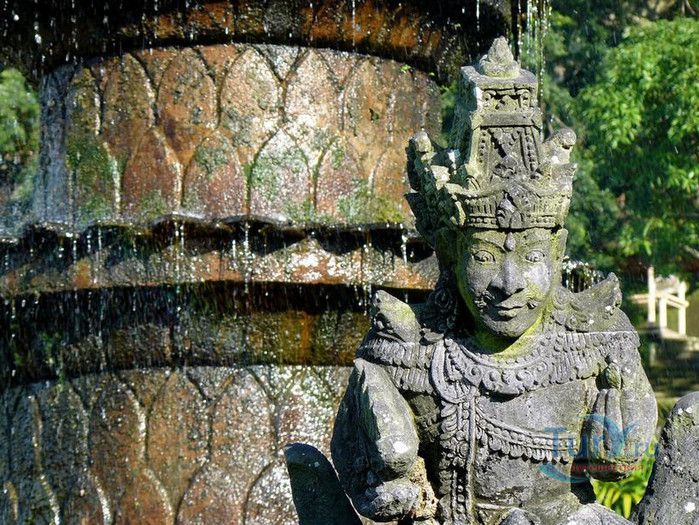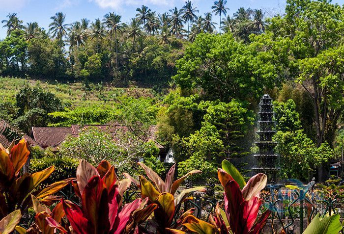 По всему саду расположено множество статуй. Они символизируют богов и демонов из индуистского эпоса — Рамаяна. Центральным элементом сада является фонтан Нава Санга на нижнем уровне. Его название можно перевести как «божественный хранитель». Фонтан состоит из 10 ярусов и символизирует высшего бога (Санг Хьянг Види), окруженного статуями балийских божеств.