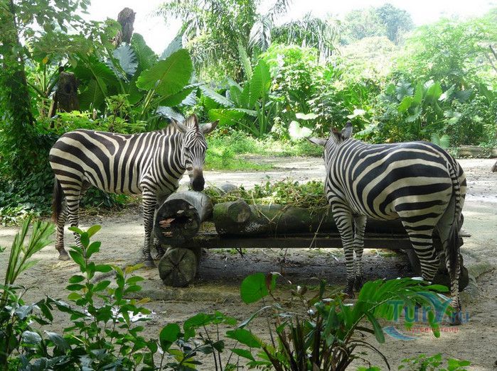 Сингапурский Зоопарк расположен на побережье водохранилища Верхний Селетар, среди густого тропического леса Мандэй. Зоопарк был открыт 23 июня 1973 года, занимает территорию площадью 26 гектаров, на которых обитают более 2800 животных, представляющих 315 видов млекопитающих, птиц и рептилий. Гости зоопарка могут наблюдать животных в их естественной среде обитания, большая часть зверей и птиц живут в просторных открытых вольерах и отделены от посетителей лишь глубокими рвами или стеклянными заграждениями. В зоопарке оборудованы смотровые площадки, высокие платформы для наблюдением за жирафами, подводные галереи, позволяющие увидеть мир водных животных, карликовых бегемотов или крокодилов. Хищники (львы, тигры, гепарды) размещены в застеклённых вольерах, внутри которых воссозданы реальные природные ландшафты дикой природы. В зоопарке есть несколько природных зон. В Африканской саванне чувствуют себя как дома львы, жирафы, африканская дикая собака, белые носороги и зебры. В зоне тропического леса обитают лемуры, ленивцы, броненосцы, муравьеды, летучие мыши, игуаны и множество насекомых. В зоне засушливых степей Австралии можно встретить кенгуру-валлаби, бородатого дракона, казуара, коалу, плащеносную ящерицу и австралийского питона. В зоне Великой рифтовой долины Эфиопии живут гамадрилы, нубийские козлы и полосатые мангусты. Здесь же воссоздана амхарская деревня - традиционное поселение коренных племён Эфиопии с глинобитными хижинами и деревянными фигурами умерших героев, стоящих на страже у входа в деревню. На острове Гиббонов обитают обезьяна-ревун, гиббоны, рыжий вари (млекопитающее из рода лемуров вари), фламинго. А на территории Королевства приматов проживают 39 видов обезьян. Среди пышной тропической растительности можно увидеть коричневого капуцина, мартышку-гусара, макак, вьетнамских лангеров. В глубоких рвах, наполненных мутной водой, обитает "живое ископаемое" - южноамериканская плотоядная рыба Арапайма, крупнейшая их пресноводных рыб в мире. В Саду Рептилий водятся гигантские черепахи, дракон Комодо (крупнейшая ящерица в мире), игуана-носорог, сетчатый питон, гремучие змеи и анаконды. Ледяная пещера с водопадом и большим бассейном, наполненным огромными глыбами льда - царство полярного белого медведя. А ещё азиатские слоны, бегемоты, бурые медведи, панды, тигры, крокодилы, дикобразы, грызуны - всех обитателей Сингапурского зоопарка просто невозможно перечислить. В зоопарке проводятся многочисленные шоу с участием животных, обзорные трамвайные экскурсии, увлекательный туры, разработаны образовательные программы для детей и взрослых. Посетители зоопарка могут принять участие в кормлении питомцев, сфотографироваться со своим любимцем на память, отпраздновать день рождения и даже позавтракать в ресторане с семейством орангутангов. Ежегодно Сингапурский зоопарк посещают более полутора миллионов человек.